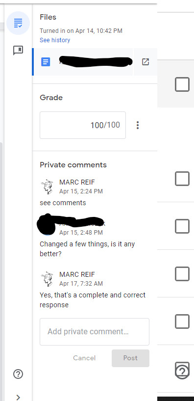 - If the corrections are not correct, write a more directed comment and ask them to redo. If there are lots of mistakes on a longer document, pick only the most important questions and only demand that they redo those.