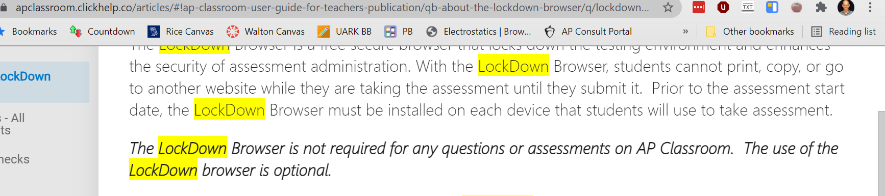 - The Lockdown browser had a lot of problems at first and would crash, causing students to lose their work. This has been fixed to automatically submit their work when it crashes. I have not used it much since the fixes and can’t attest to the improvement.